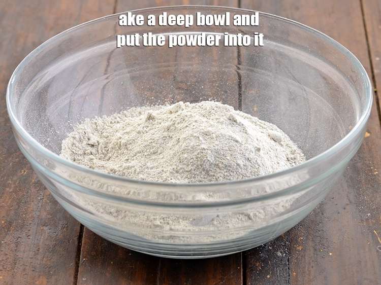 एक गहरी कटोरी लें और उसमें पाउडर डालकर, एक तरफ रख दें।