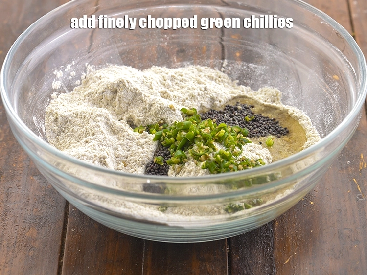 अब तीखेपन के लिए 2 टी-स्पून बारीक कटी हुई हरी मिर्च (finely chopped green chillies) डालें।