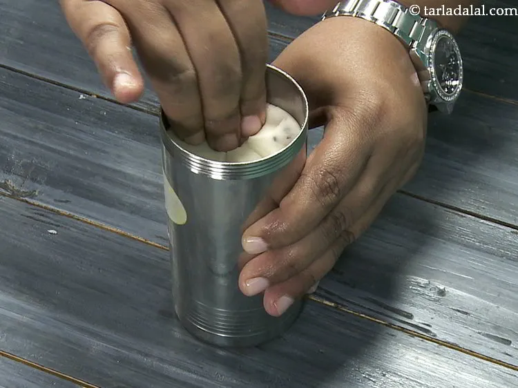 - Take a portion of the dough and press it into a greased chakli “press” and cover it with the lid.