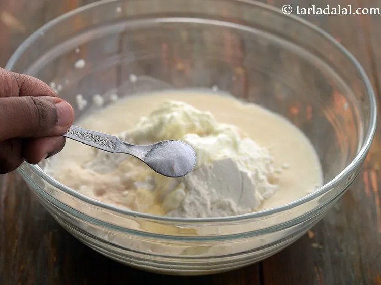- Combine the plain flour, yeast-sugar mixture, curds, melted ghee and salt in a bowl and knead into a soft dough, using enough lukewarm water.