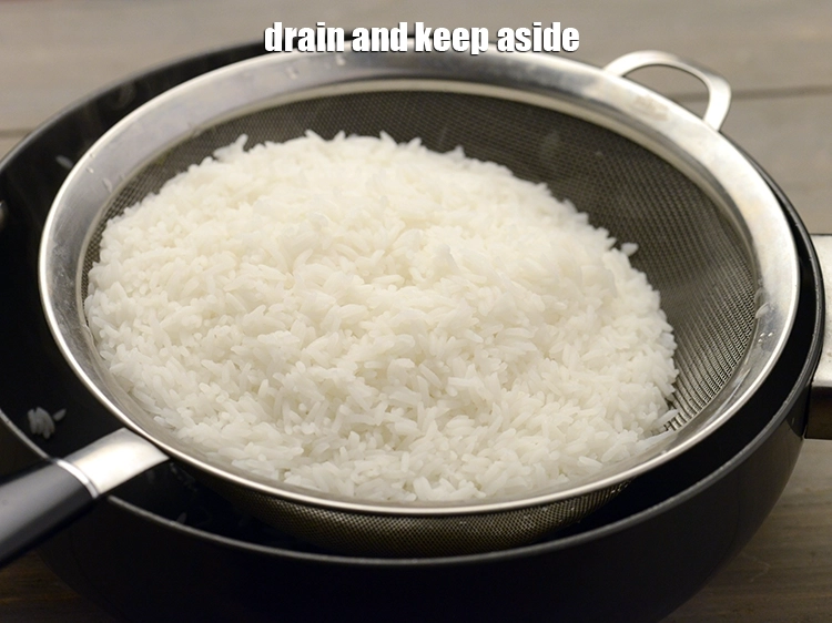 - Boil enough water in a deep non-stick pan, add the oil, little salt and rice, mix gently and cook on a medium flame for 10 to 12 minutes, while stirring occasionally.
