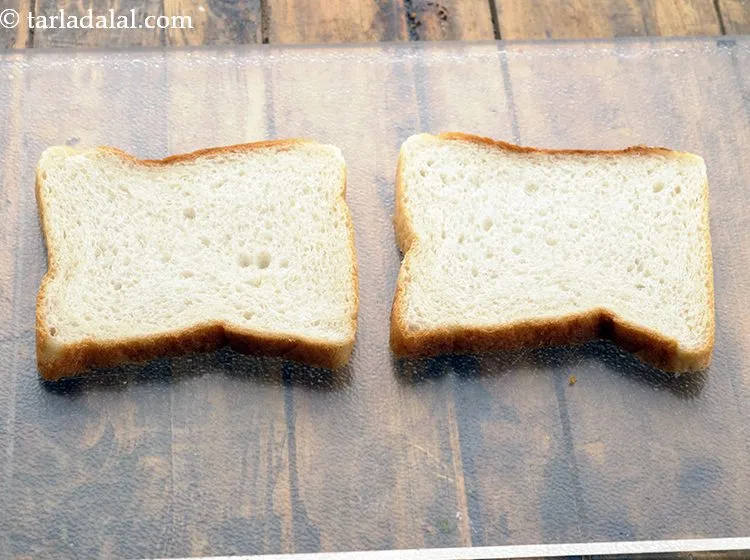 इसके अलावा, एक साफ और सूखी सतह पर २ ब्रेड स्लाइस रखें।