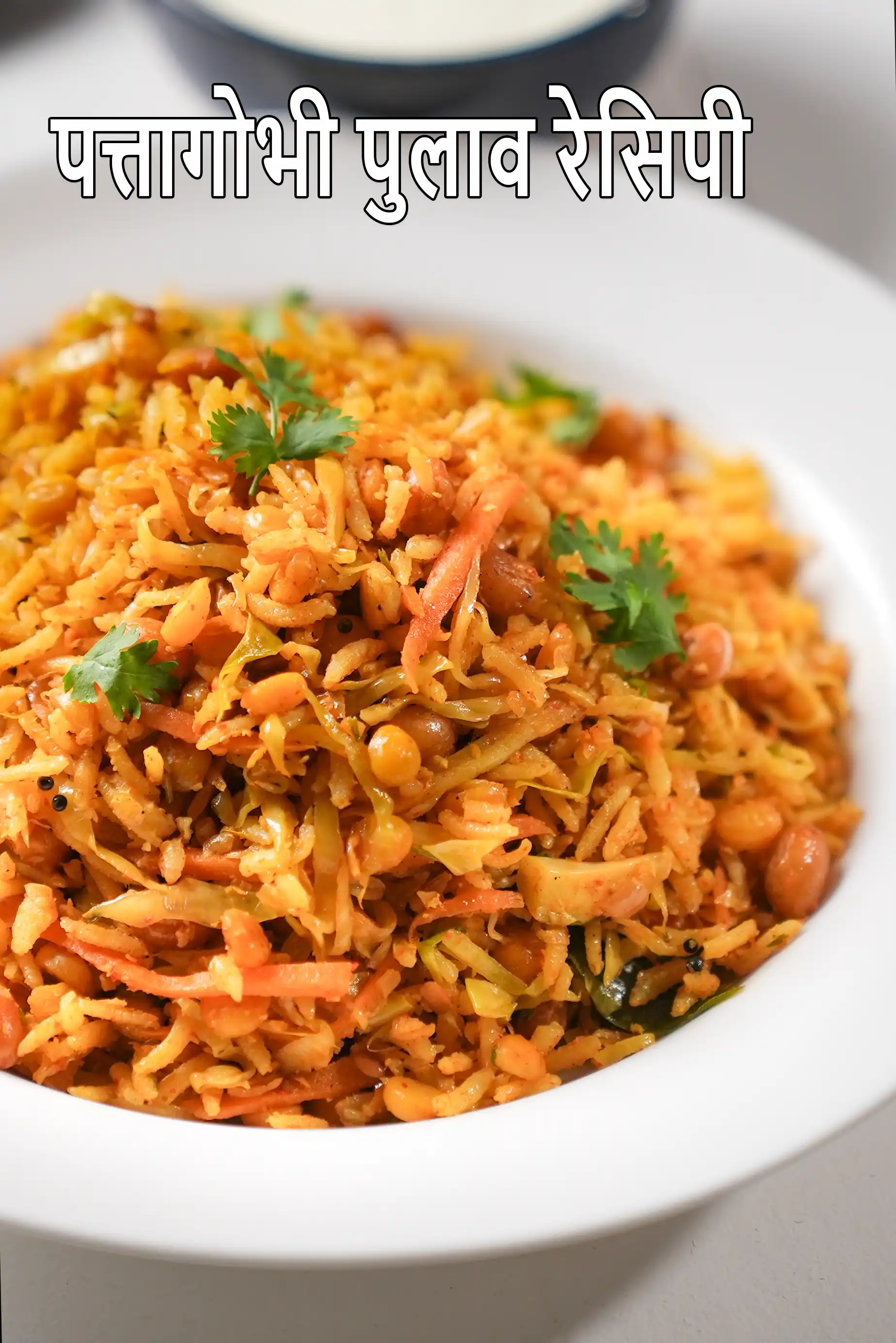 पत्तागोभी पुलाव रेसिपी | मसालेदार पत्ता गोभी पुलाव | स्वस्थ भारतीय गोभी चावल | पत्तागोभी पुलाव रेसिपी हिंदी में | गर्मागर्म धनिये से सजाएं कर परोसें ।