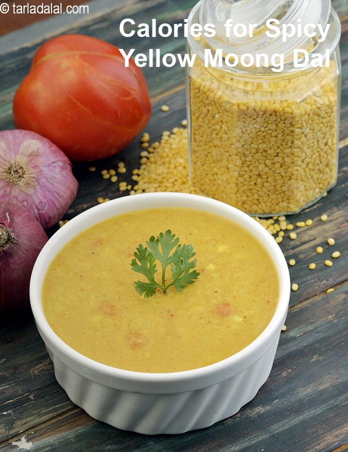 72 calories for 1 serving of Yellow Moong Dal, Cholesterol 0 mg, Carbohydrates 12.6g, Protein 4.8g, Fat 0.3g.