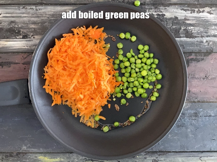 Add the 1/4 cup boiled green peas.