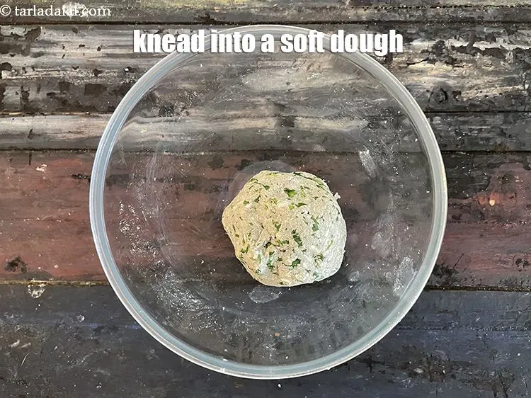 - Combine all the ingredients and knead into a soft-smooth dough, using enough water.