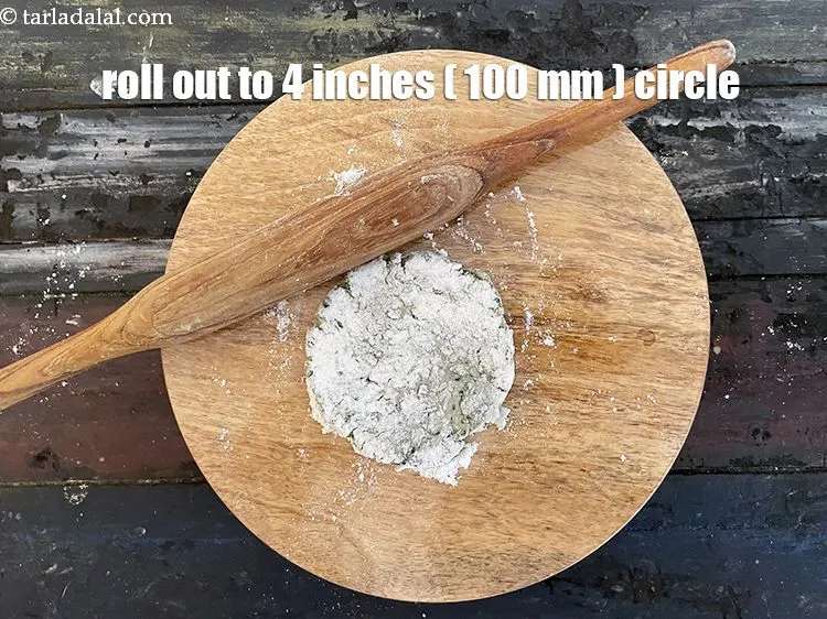 Roll out one portion of the dough into a circle of 100 mm. (4") diameter.