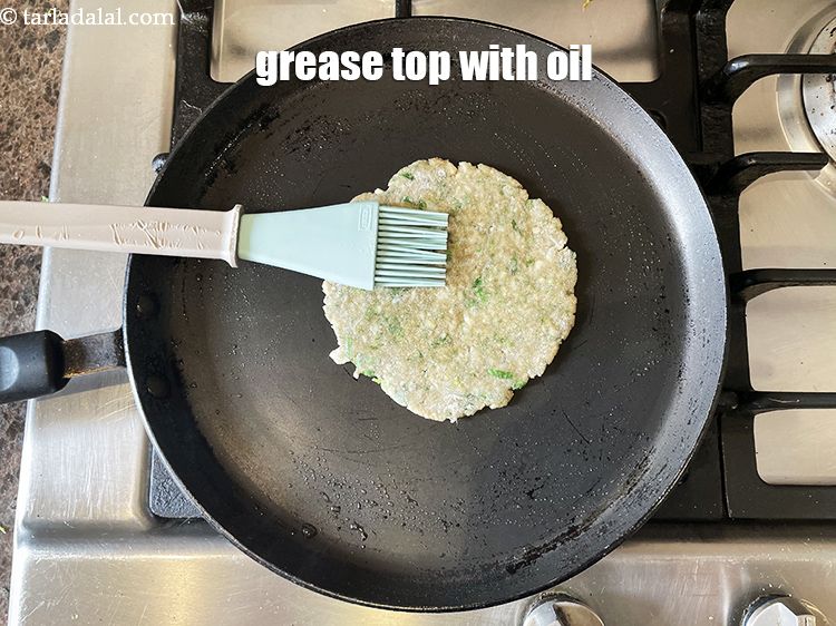 - Heat a non-stick tava (griddle) using 1/4 tsp of oil.