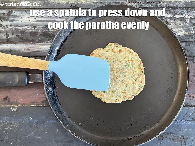 Keep cooking and flipping cauliflower and bajra roti | bajra gobi paratha | healthy veg paratha with spring onions | till done.