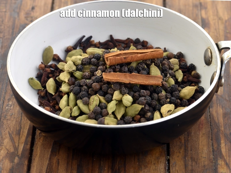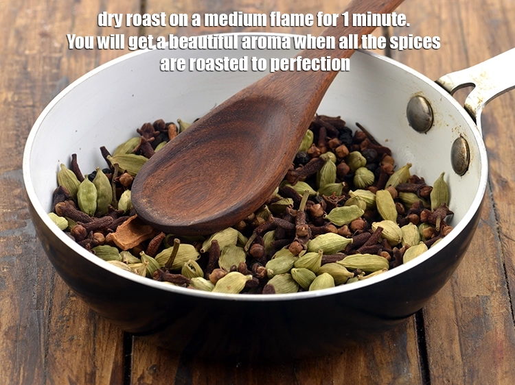 - To make chai ka masala , combine the cloves, cardamom, black peppercorns and cinnamon in a broad non-stick pan and dry roast on a medium flame for 1 minute.