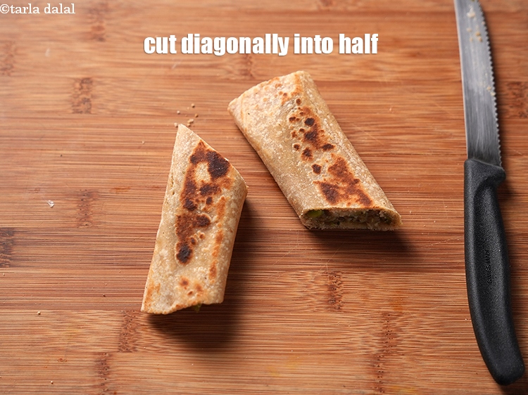 - Repeat steps 2 and 4 to make 7 more wraps. Cut it diagonally into half.