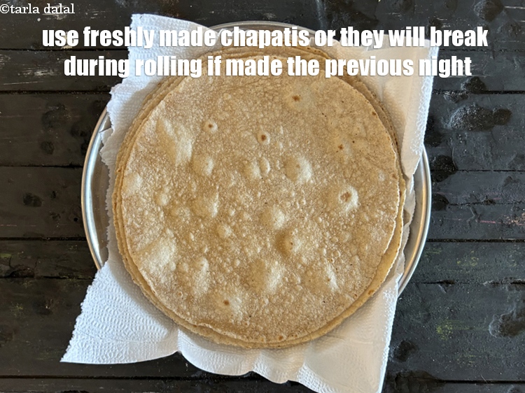 Use fresh made chapatis or they will break during rolling if made the previous night.