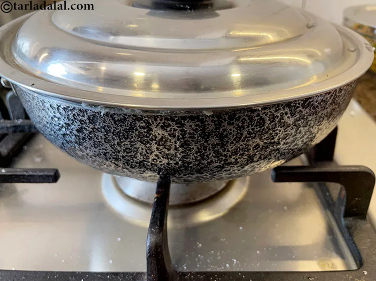 - To make chawal bhakri, heat 1 cup of water and salt in a deep non-stick pan and allow the water to come to a boil.