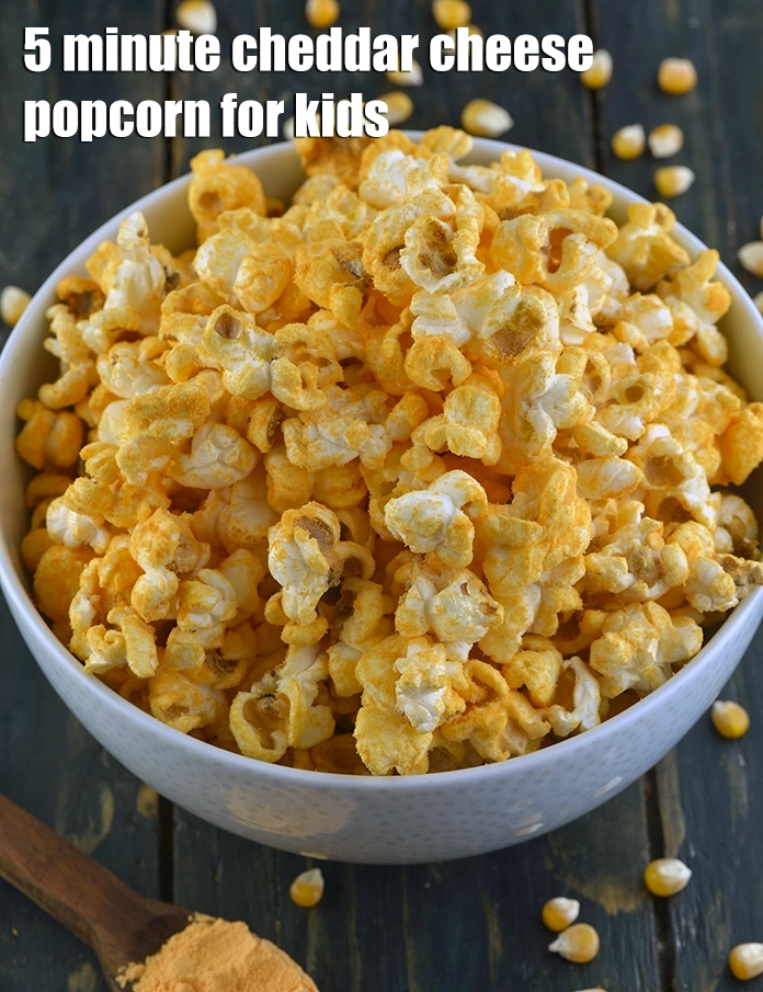 Make popcorn a little more delicious. Freshly popped corn, cheese and herbs tossed in together makes a surprisingly tasty snack - 5 minute cheddar cheese popcorn.