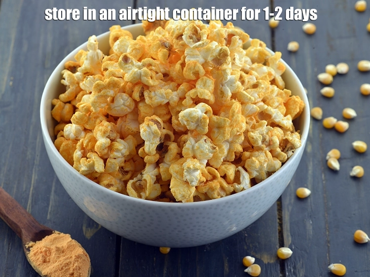 - Serve the cheese popcorn immediately or store in an air-tight container.