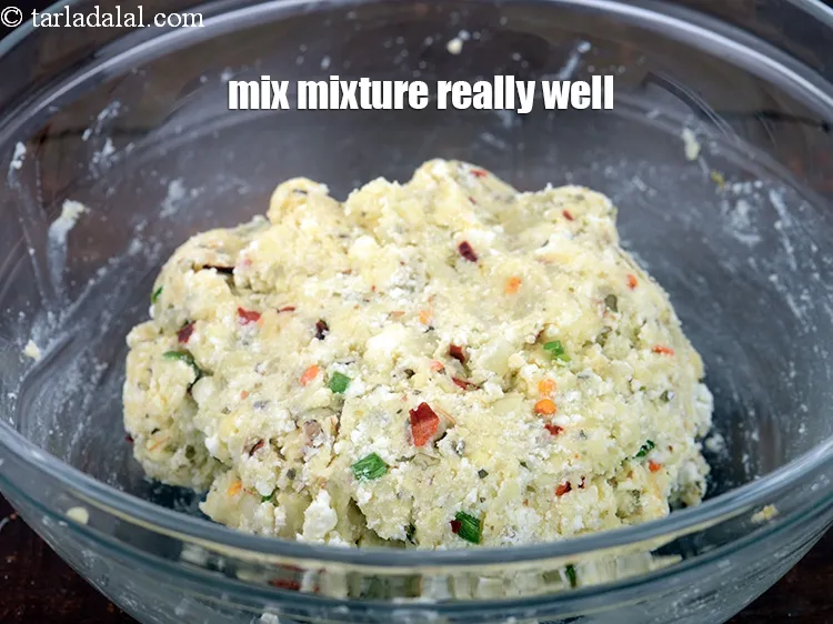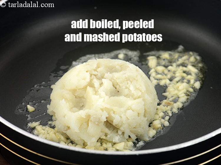 Step 6 – Add 1/2 cup <a href="https://www.tarladalal.com/glossary-boiled-and-mashed-potatoes-1831i">boiled , peeled and mashed potatoes</a>.