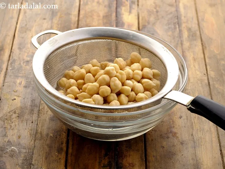 Drain the boiled kabuli chana using a strainer and keep aside. YOu will get aproximately 1/2 cup of cooked kabuli chana.