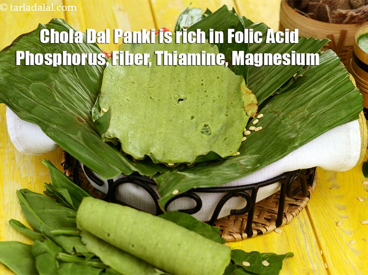 Chola Dal Panki is rich in Folic Acid, Phosphorus, Fiber, Thiamine, Magnesium.
