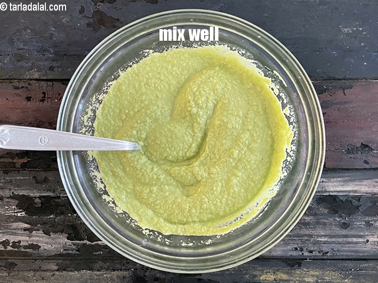 - Transfer the mixture into a bowl, add the ginger-green chilli paste, oil, asafoetida and salt and mix well.