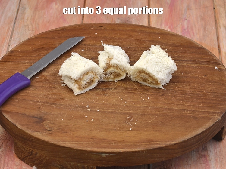 Cut into 3 equal portions. Repeat steps 4 to 7 to make 9 more pieces.