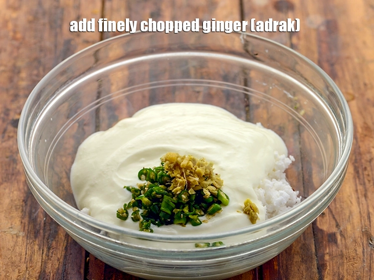 Add 1/2 tsp finely chopped ginger (adrak). It will help in enhancing the flavor of our coconut pachadi.