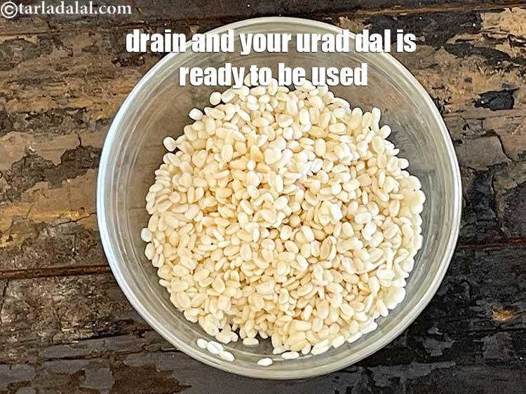 1/4 कप उड़द दाल (urad dal) , 15 मिनट के लिए भिगोकर छानी हुई