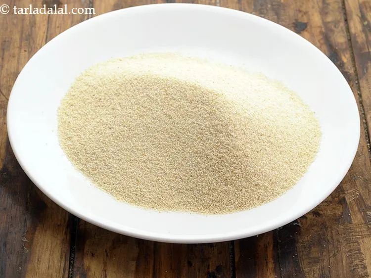 - भुनी हुई सूजी डालकर, मध्यम आँच पर और 1 से 2 मिनट भूनिए।