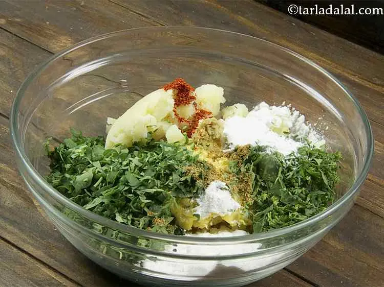 इस मिश्रण का कडक आटा बनाएं, जीसे टिक्कियों का आकार देने में आसानी होगी।