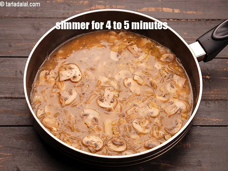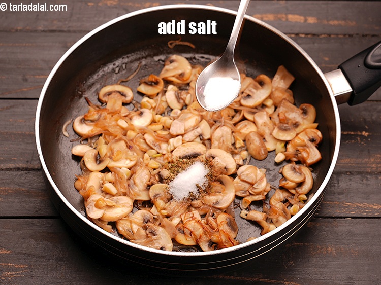 - Add mushrooms and saute on medium flame for 4 minutes, while stirring occasionally.