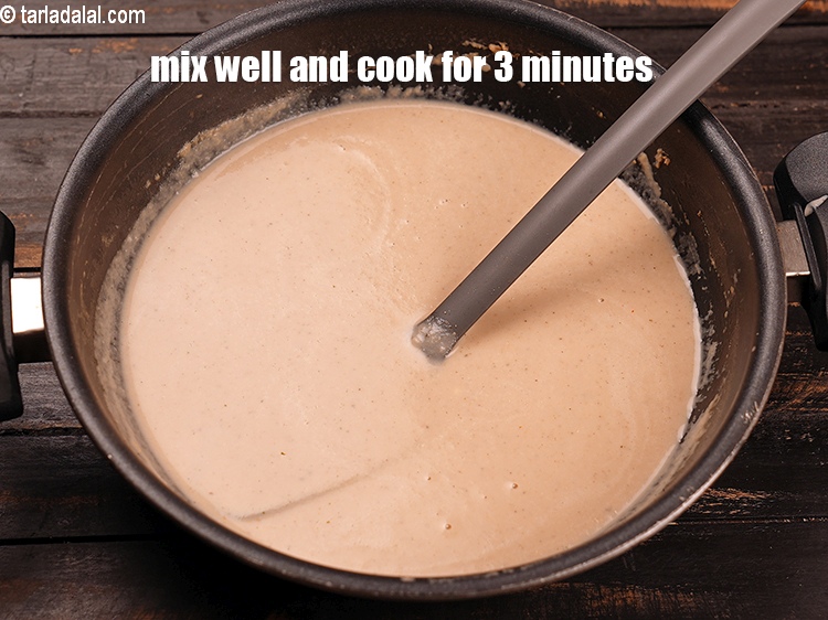- Now transfer the paste into deep pan, add 1 cup water, fresh cream.
