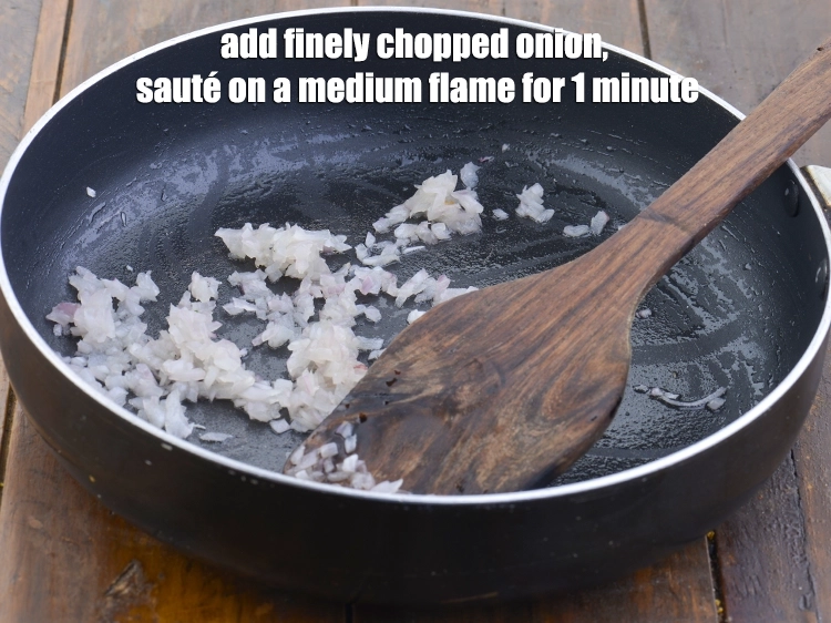 Add the 1/4 cup finely chopped onion and sauté on a medium flame for 1 minute.