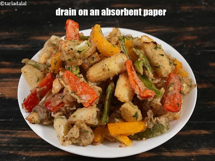 add ½ cup cornflour. When the battered vegetables are fried, the cornflour helps to create a crispy, golden-brown crust. This is because cornflour forms a thin, delicate layer that becomes crispy when heated.