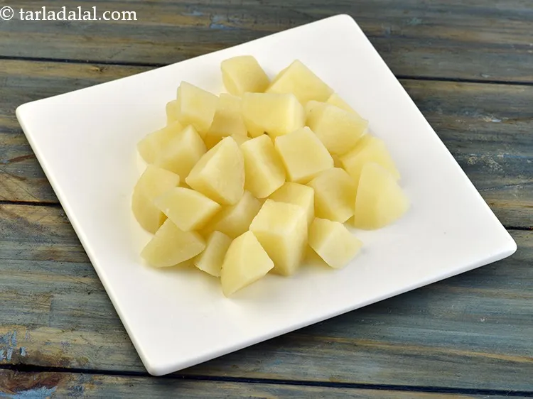 If you don’t have baby potatoes, then boil the potatoes, peel them and cut into big cubes.