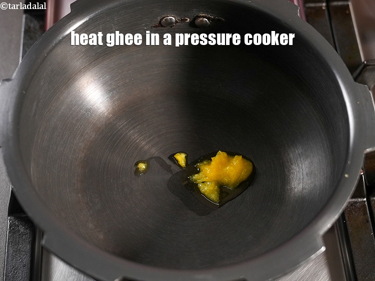 - To make dalia kheer recipe, heat 1 tsp ghee in a pressure cooker, add the nuts and saute for a minute.