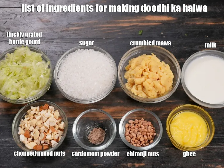 what is doodhi ka halwa made of ? See below image of list of ingredients for doodhi ka halwa.