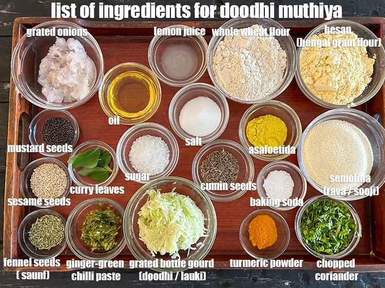 See image of list of ingredients to Doodhi Muthia ( Gujarati Recipe).