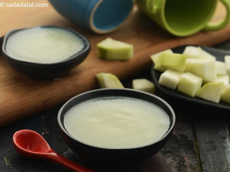 Doodhi, a watery vegetable, is ideal for making soups for babies! It helps to fulfil their water requirement in an easy-to-digest and soothing form. The bland taste of doodhi is also liked by babies in the form of Bottle Gourd Soup for Babies and Kids.