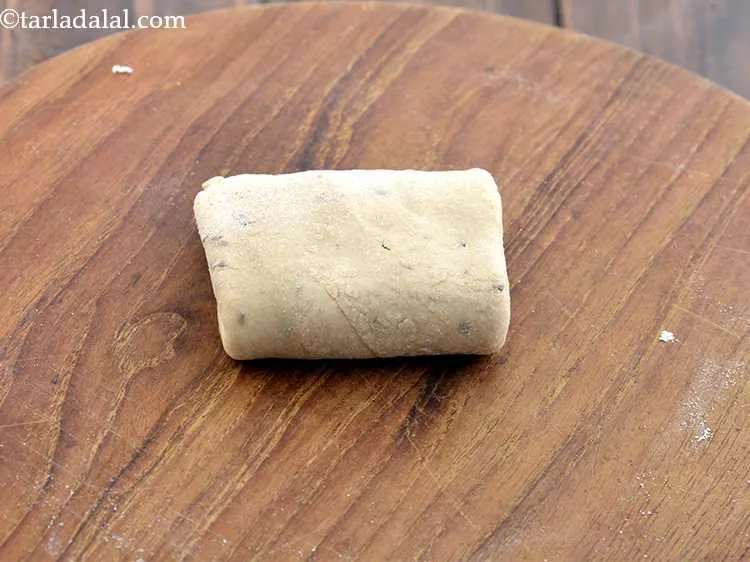 Step 13 – Dust the rolling surface with a little whole wheat flour and roll the paratha out …