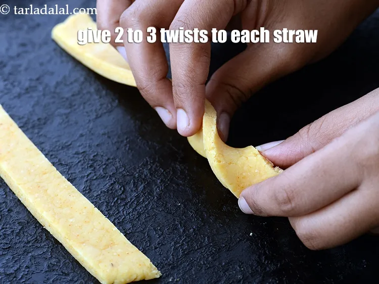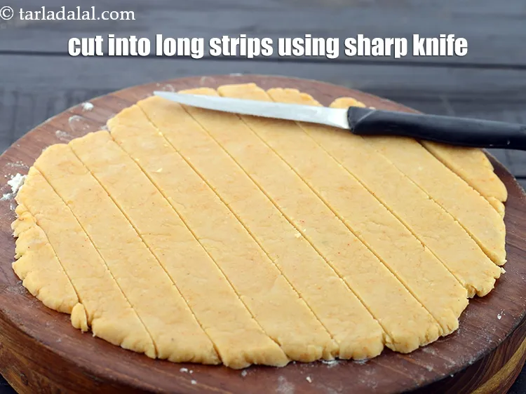 Tips to make instant cheese straws. 1. Butter has to be at room temperature, so remember to remove it from the refrigerator at least half an hour in advance. 2. For rolling use a big board or a plain surface and spread enough plain flour on it so rolling is easier. 3. Ice cold water is a must to make the cheese straws flaky. 4. While arranging the cheese straws on the baking tray. Keep enough distance between the straws so they do not stick to each other. 5. Cool the cheese straws well before storing, as warmth may make them soggy.