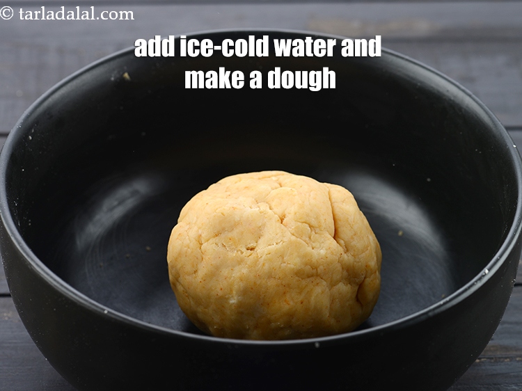 - Add ice-cold water (approx. 2 tablespoon) and knead into a stiff dough.