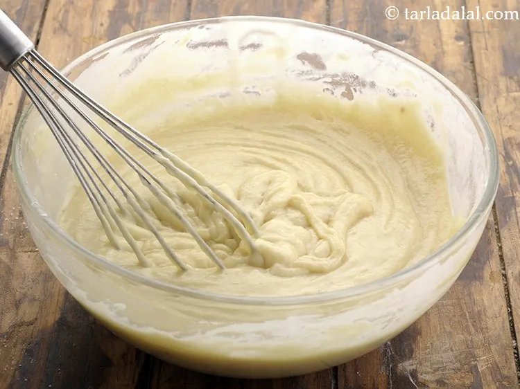 Mix to make a smooth batter with help of a spatula or a whisk, the batter should be of pouring consistency, You can come up with variations to this sponge cake recipe by adding nuts, raisins, chocolate chips, berries etc.