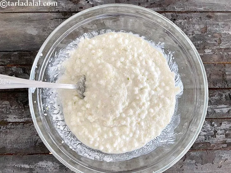 Grind the mixture in a blender to a smooth batter without adding any water. Keep aside.