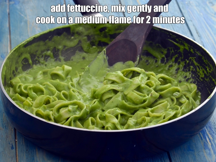 Fettuccine in Spinach Sauce, Pasta in Spinach Sauce recipe with step by step photos
