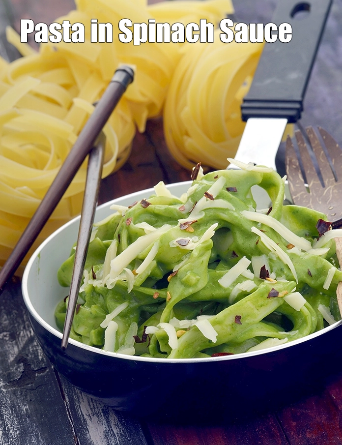 You are here: Home> Cuisine > Italian Vegetarian > Italian Veg Pasta > Fettuccine in Spinach Sauce, Pasta in Spinach Sauce