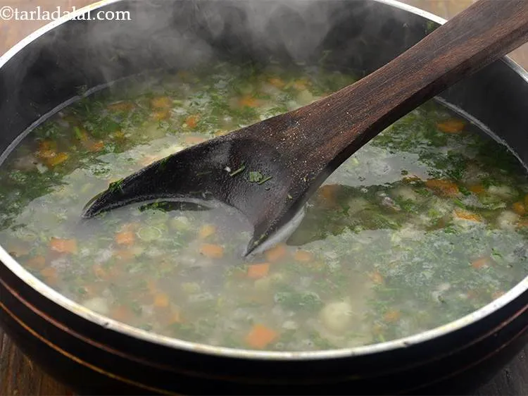 Mix the Garlic Vegetable Soup well and cook on a medium flame for 1 more minute.