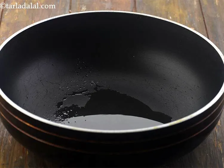एक गहरे नॉन-स्टिक पैन में 1 टी-स्पून तेल ( oil ) गरम करें। सूप को हेल्दी बनाने के लिए आप समान मात्रा में जैतून के तेल का उपयोग कर सकते हैं।