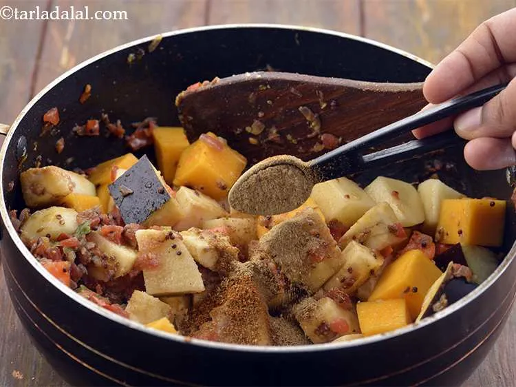 Similarly, add coriander powder to enhance the flavours of your Ghanto Tarkari.