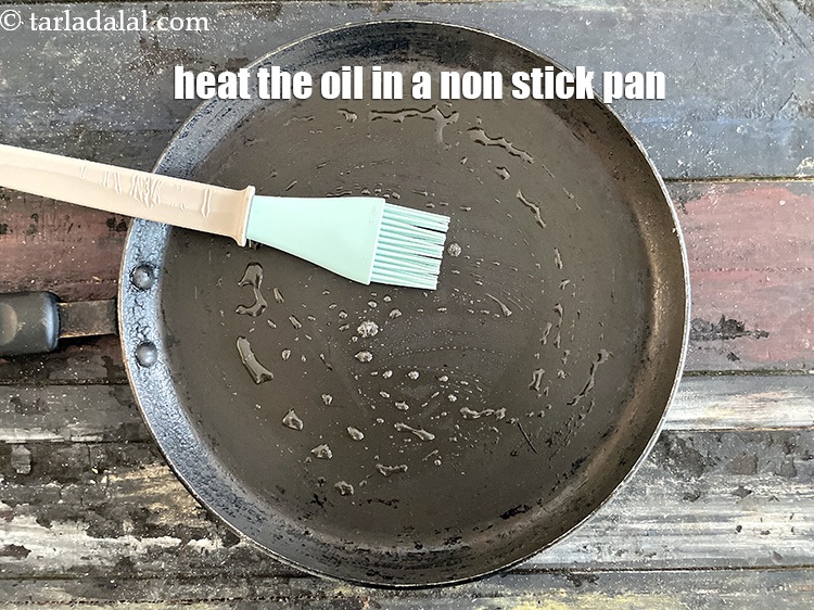 - Heat the oil in a broad non-stick pan, add the cumin seeds and sauté on a medium flame for a few seconds.