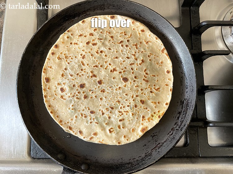 Cook paratha for 30 to 45 seconds on a medium flame.