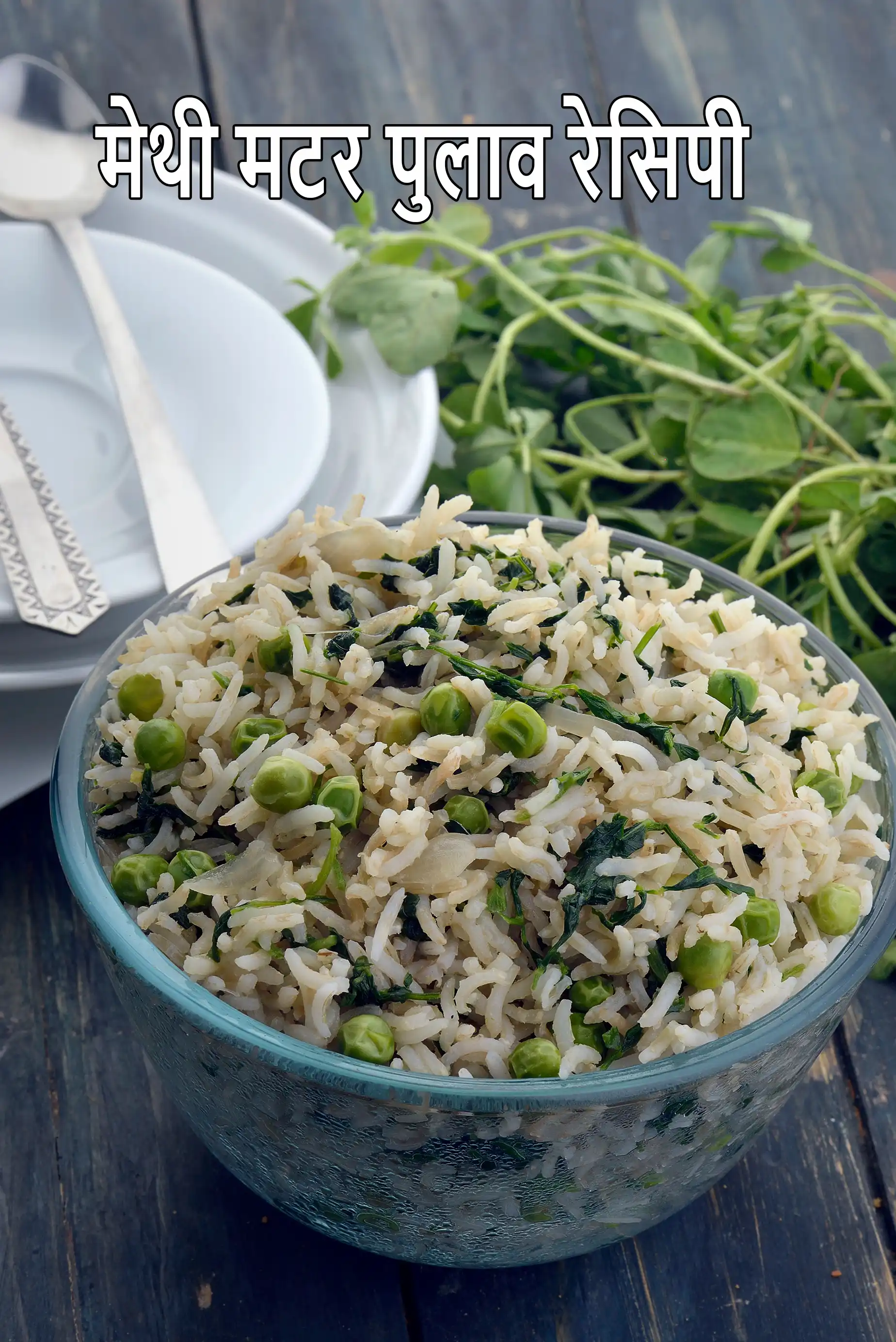 मेथी मटर पुलाव रेसिपी | मेथी पुलाव | हरे मटर और मेथी का पुलाव | मेथी मटर राइस की कैलोरी के लिए यहाँ क्लिक करें